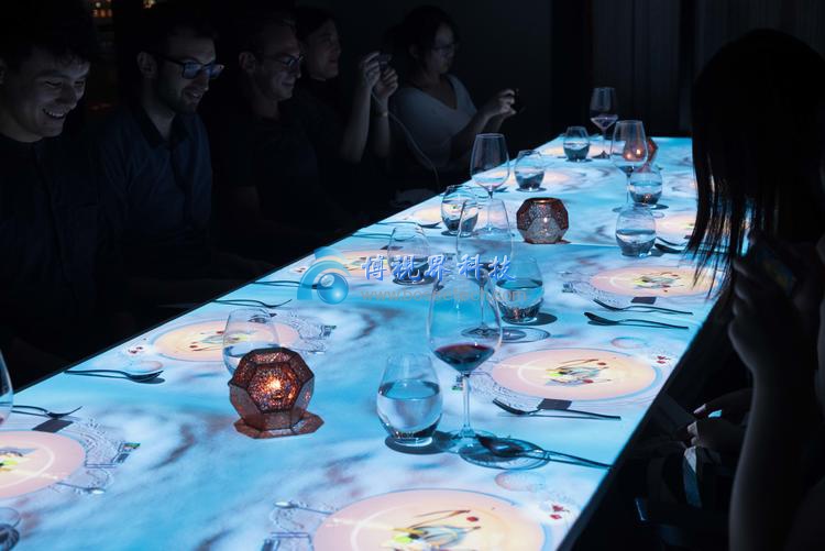 就餐前先來(lái)一頓視覺(jué)大餐吧! 通過(guò)裸眼3D投影技術(shù)在餐桌上投射出3D短片,不需要佩戴眼鏡即可體驗(yàn)3D效…
